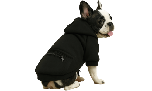 Pasji pulover s kapuco in vrvico ter žepom na zadrgo